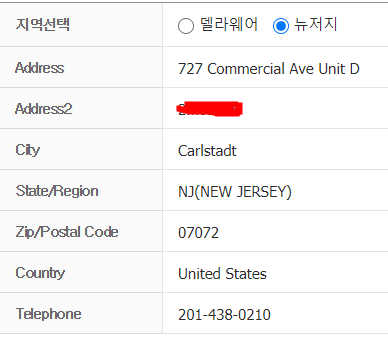 다음과 같이 배송대행지 주소가 뜨게 됩니다.